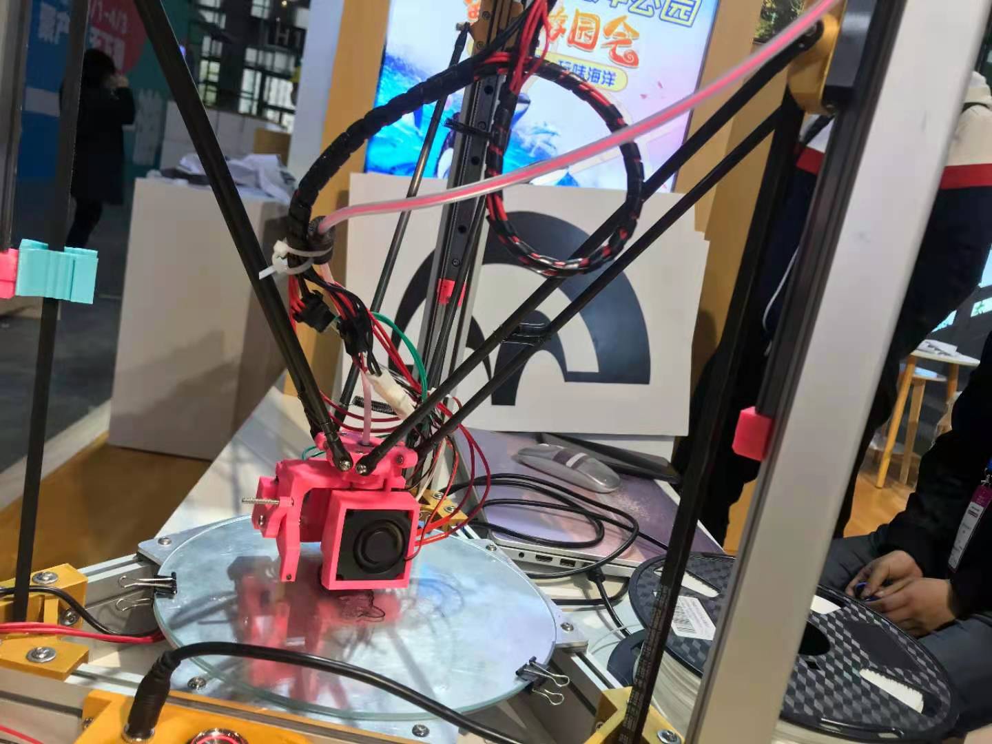 为了更好代表上海建桥学院参展,达到更高质量的展览效果,展会之前,实验室成员做了展会方案设计、展出3D模型准备及参展小礼品制作等大量工作,并提前去现场进行3D打印机调试及展品布置工作。
