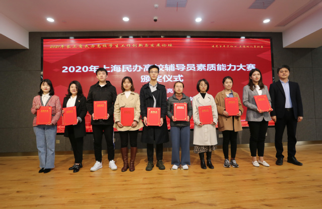 会上,还为2020年上海民办高校辅导员素质能力大赛的9位获奖选手颁奖、2020年上海民办高校学生工作精品项目的10位立项人颁发了立项证书。
