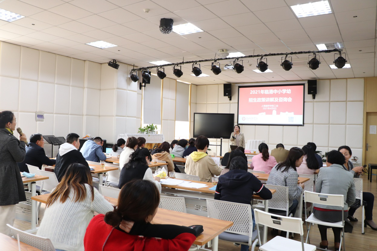 一年一度中小学幼招生入学季,适龄儿童入学入园是每一个家庭最重要的事,也是每一个家庭忧虑焦心的难题。为帮助教职工更好的掌握临港主城区中小幼入学的政策和路径,校工会想教职工所想,急教职工所急,于4月8日下午在工会俱乐部举办了2021年中小学幼招生宣讲咨询会。临港一中校长、明珠临港小学招办主任、海音幼儿园园长受邀到校为我校教职工进行了2021年中小学幼招生政策解读咨询活动。来自全校家有子女入学入园的教职工近50多人参加了宣讲会,校工会副主席潘秀玲主持宣讲会。