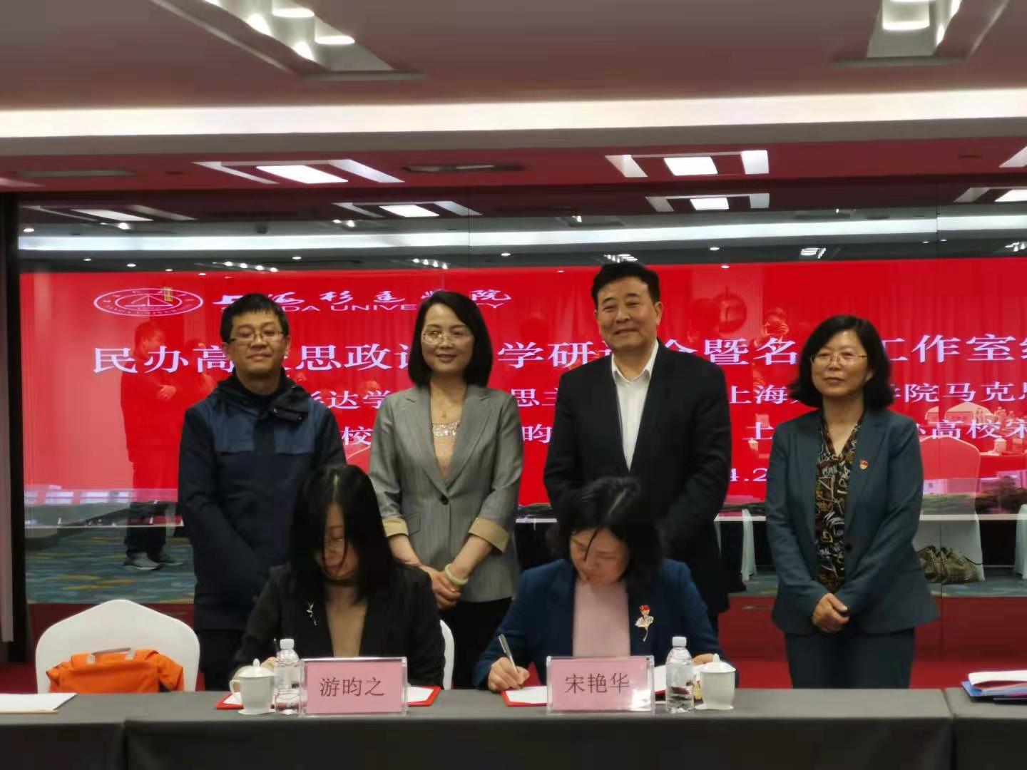 为最大限度的整合民办高校的优质资源,进一步提高思想政治理论课教学质量和效果,探索上海市高校思想政治理论课建设的新模式。4月24日上午,我校上海市民办高校思政课名师工作室“宋艳华工作室”和上海杉达学院上海市高校思政课名师工作室“游昀之工作室”举办民办高校思政课教学研讨会暨结对共建签约仪式。
