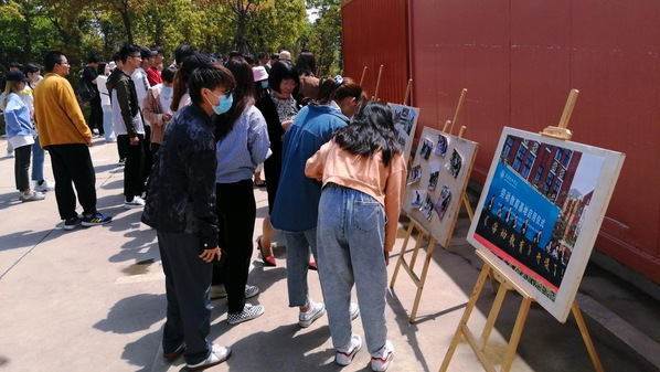 这几个月来,选课大学生在劳育实践基地上根据农时节气、作物情况进行农业生产劳动实践,学会使用各色劳动工具,真正吃苦流汗,体验黄豆收割、蚕豆播种、果树种植,以及土豆、茄子、辣椒等等作物的田间生产过程,为将来开展复杂性、创造性劳动打下点滴基础。而今天的“劳动月”现场,学校通过照片方式展示了同学们的实践课堂表现,特别是基地从荒芜贫瘠到硕果累累的全过程。