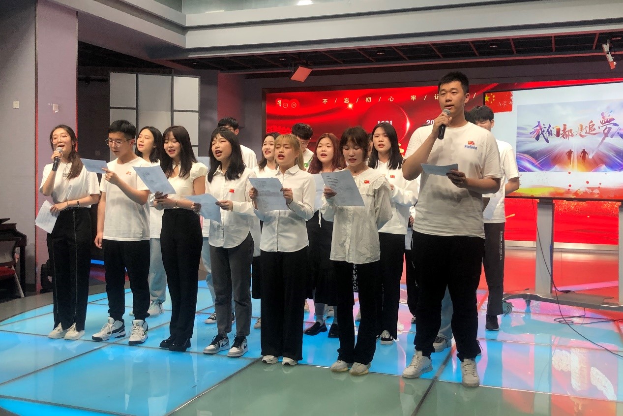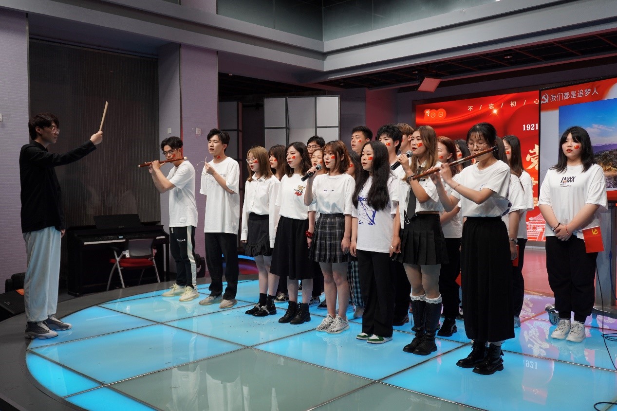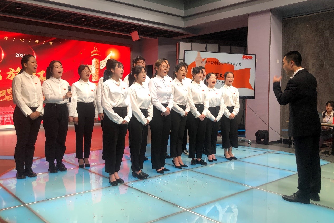 学院辅导员组带来了《唱支山歌给党听》,教师们用嘹亮的声音唱响了对中国共产党百年华诞最美好的祝福。