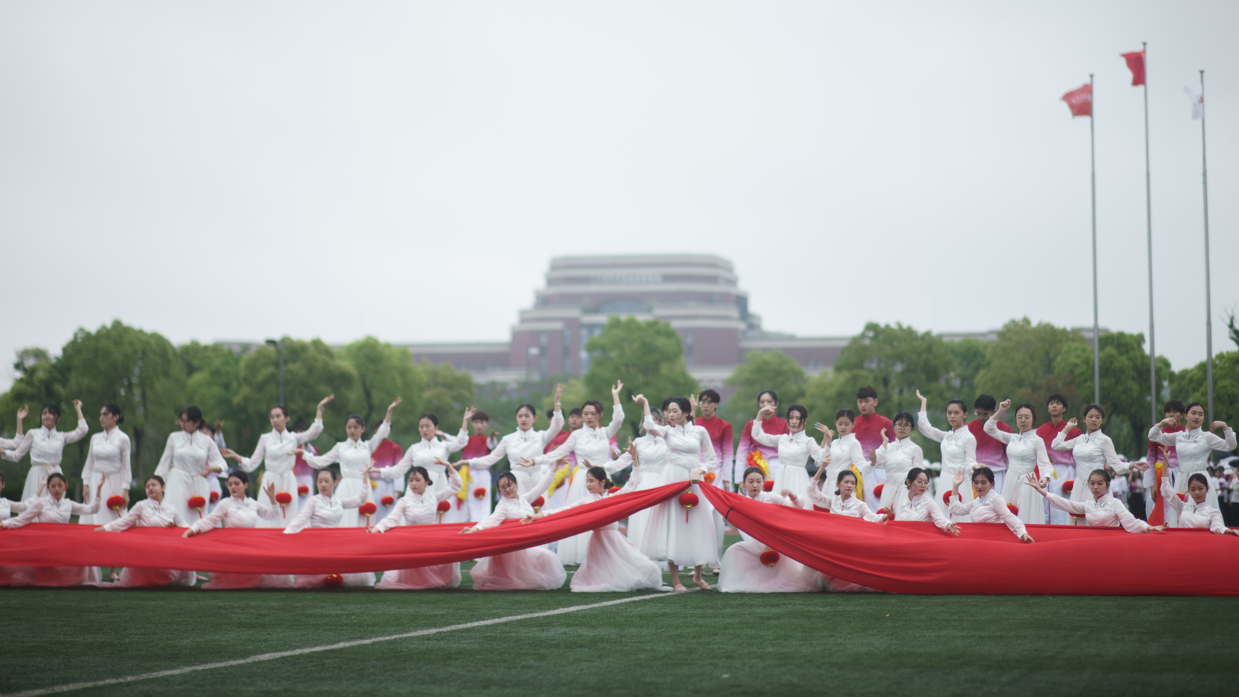 表演展示环节,翩然灵动的古典舞、刚劲有力的军体拳、翻腾跳跃的舞龙表演、生动活泼的啦啦操……参演师生们以活力四射的歌舞,舞动青春的力量,绽放魅力风采。本次开幕表演也融入了红色元素,参演师生也用自己的创意,为建党100周年送出自己的祝福。