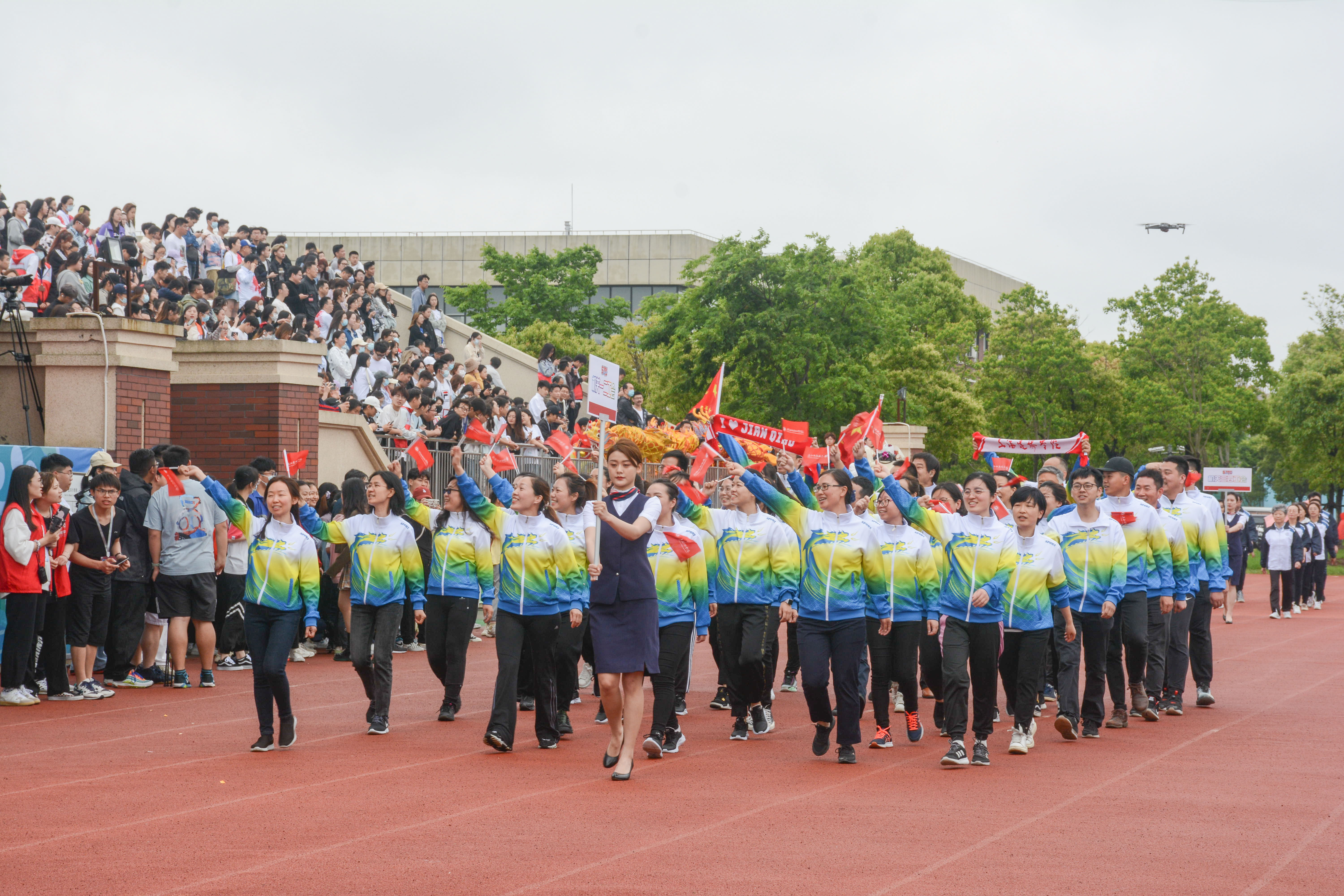 激昂的进行曲拉开运动会的序幕,各学院运动员方阵和教职工代表队依次入场以整齐的步伐,饱满的热情,展现建桥人的飒爽英姿。当天,教职工与学生代表还进行广播操表演。