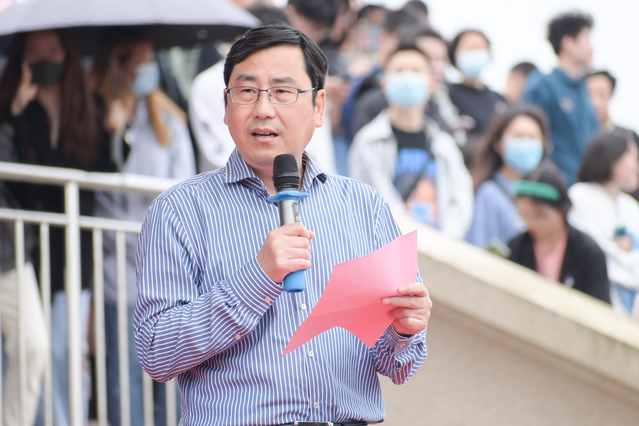 杨俊和副校长宣布第二十届上海建桥学院体育运动会开幕。