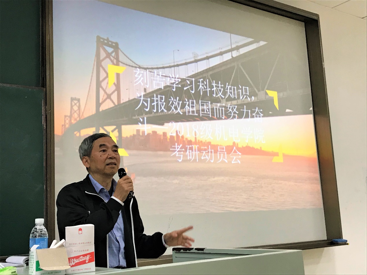 楼纪国教授作“刻苦学习科技知识,为报效祖国而努力奋斗”主题动员,他介绍了考研目的、报考指导、复习规划和调剂选择等。指出考研是为了报效祖国,更好地为国家四化建设服务,为了获得更大的平台,拥有更扎实的创业基础。他建议拿到四门课程的大纲,应在不同阶段做不同的规划进行复习。