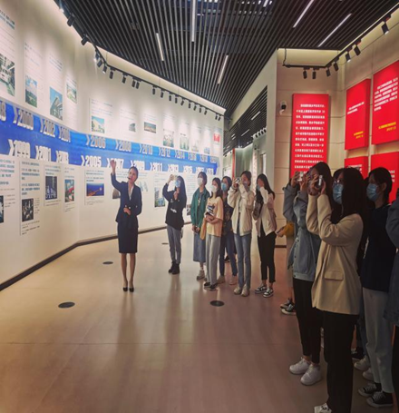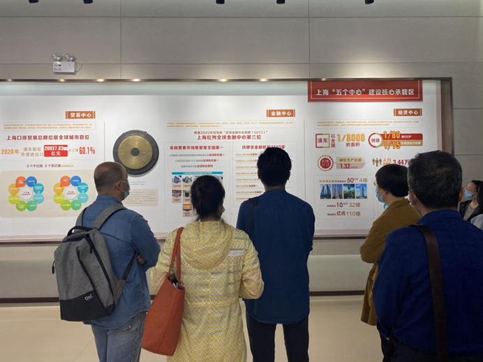 在讲解员的引导下,教工和学生党员走进展厅,在一幅幅照片、一段段视频、一组组数据前驻足观看,回顾历史、展望未来。展厅里,一条时间轴串联起浦东开发开放30年来波澜壮阔的历程;50多项“全国第一”集中展现了浦东的大胆试、大胆闯、自主改,每一项都让浦东离世界更近;烂泥渡路的今昔对比,见证一座现代化新城的日新月异。整个展厅充分展示了浦东开发开放30年的重要历程和辉煌成就,充分展示了浦东作为上海国际经济、金融、贸易、航运、科创中心的核心承载区建设情况和中国(上海)自由贸易试验区制度创新重大成果以及日益加快的国际文化大都市建设步伐,也充分展示了浦东敢闯敢试、先行先试,推动高水平改革开放的勃勃生机和活力。