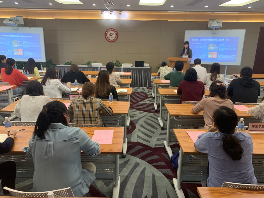 会上,李婕主任针对我校2020年垃圾分类工作做了总结报告,指出在学院各部门的共同努力下,我校顺利举办了一系列垃圾分类宣传及培训工作,并获得了“2020年度上海生活垃圾分类时效综合考评优秀高校”荣誉称号。