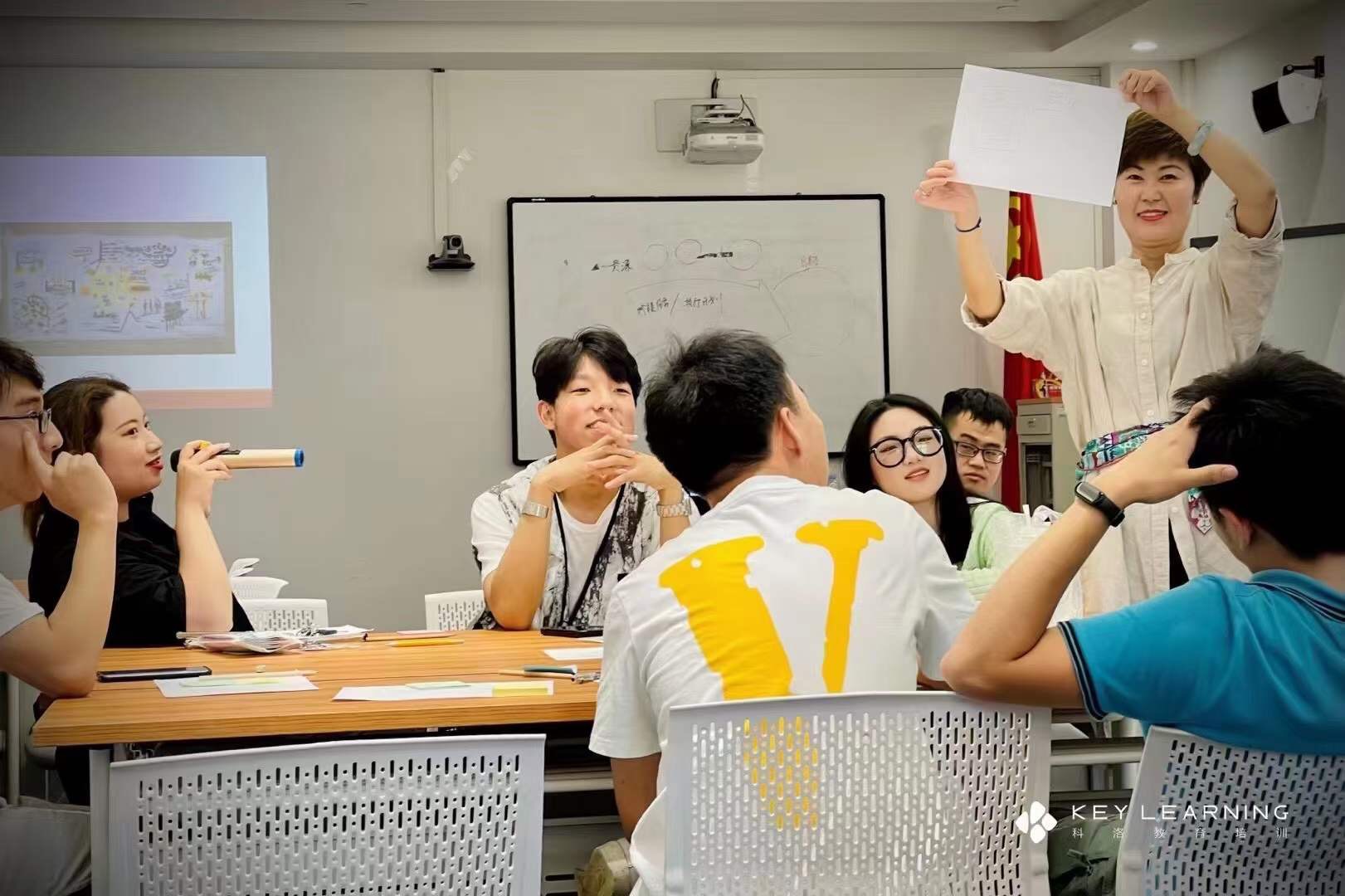 胡彧胤以“互动式”“沉浸式”的教学方式,运用视觉语言,结合平衡轮、迪士尼策略、决策漏斗等视觉工具,让学生们通过游戏模拟、互动体验,尝试将创业项目目标可视化。