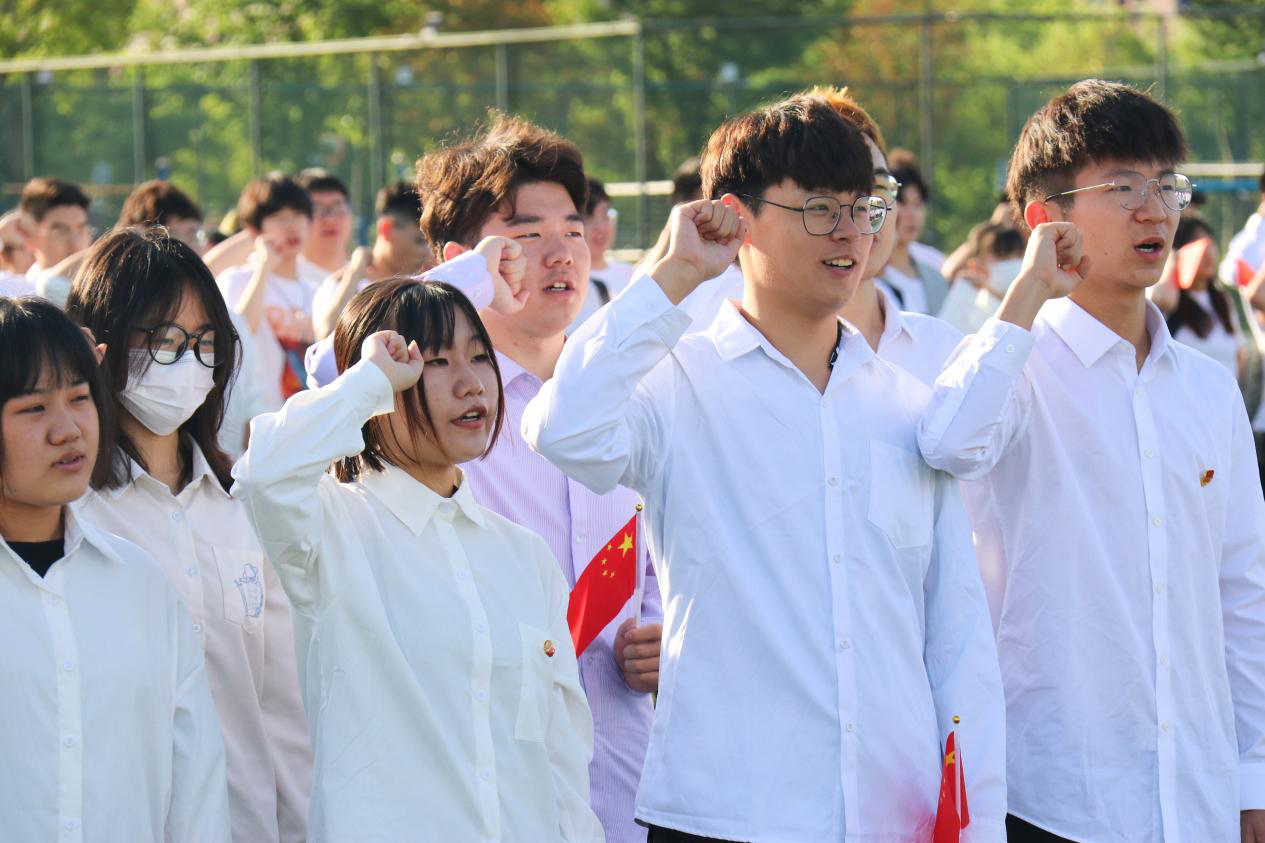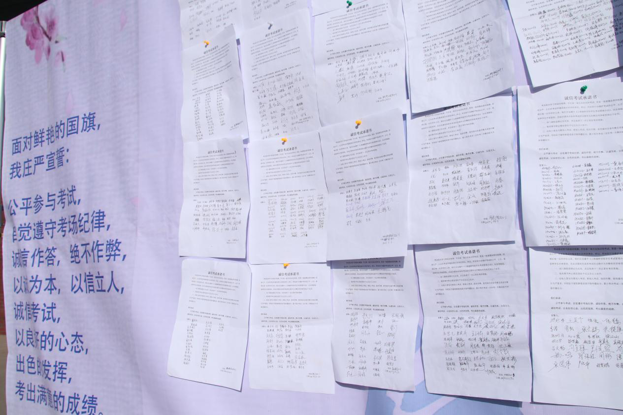 激扬的国歌过后,现场的歌声响起,全体师生合唱歌曲《歌唱祖国》,用嘹亮的歌声献礼党和国家。身为青年学生,除了歌唱祖国,还落到实处。临近期末,学院全体在校生自发签订《诚信考试承诺书》,并在朱嘉秋的带领下进行诚信考试宣誓,誓言字字入心,句句铿锵,响彻操场,弥久不散,这是信息人表达诚信做人、踏实做事的坚定的信念,也是“立德树人”育人成果的良好体现。