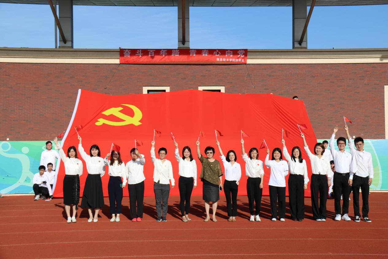 胸怀千秋伟业,恰是百年风华。今年是中国共产党百年华诞,百年征程波澜壮阔,百年初心历久弥坚,百年精神终得延续,值此历史节点,信息技术学院师生满怀爱国热情,秉承“感恩、回报、爱心、责任”八字校训,于6月7日上午,举行“奋斗百年路 青春心向党”主题升旗仪式。