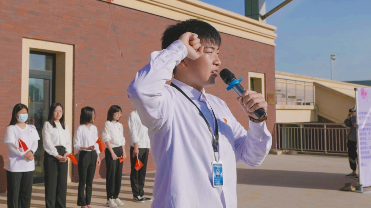 仪式最后,信息技术学院党委书记王晨岑带领同学们在重温党史中缅怀初心,在奋斗征程中坚定信仰,在追忆历史中筑牢担当,鼓励同学们做“有志、有识、有为、有恒”的信息新青年,以实际行动和出色成绩迎接建党100周年。