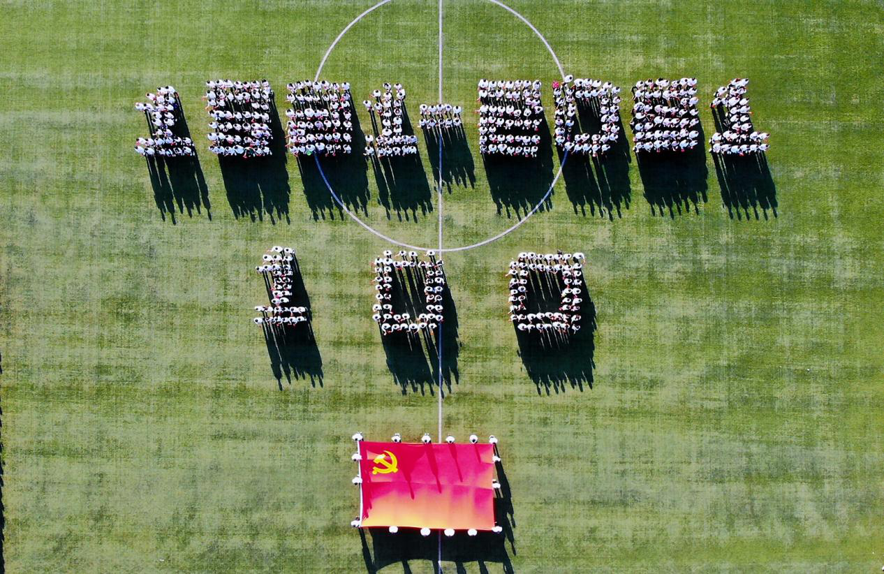 熹微晨光下,信息技术学院300余名学生排成“100”、“1921-2021”的字样,向党表达信息人爱党忠党的赤子之心。