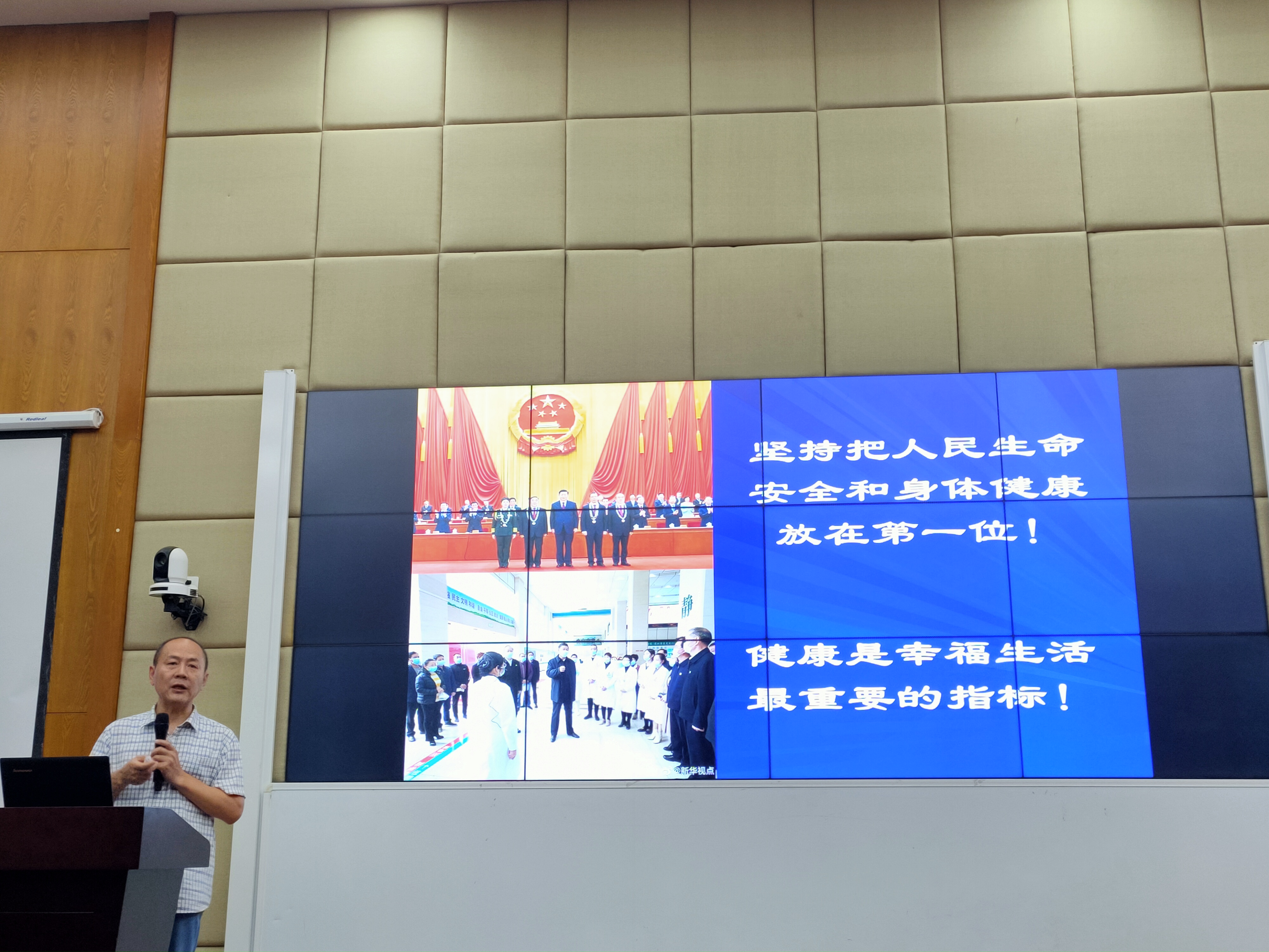 6月10日下午,健康管理学院邀请海军军医大学健康管理研究中心主任孙金海教授在3222报告厅为健康管理学院师生开展“健康中国战略与高素质人才”主题讲座。焦庆堂院长主持本次讲座,副院长詹文娴、健康服务与管理系主任姚美芳、健康服务与管理系全体专职教师及2020级健康服务与管理系学生到场聆听。