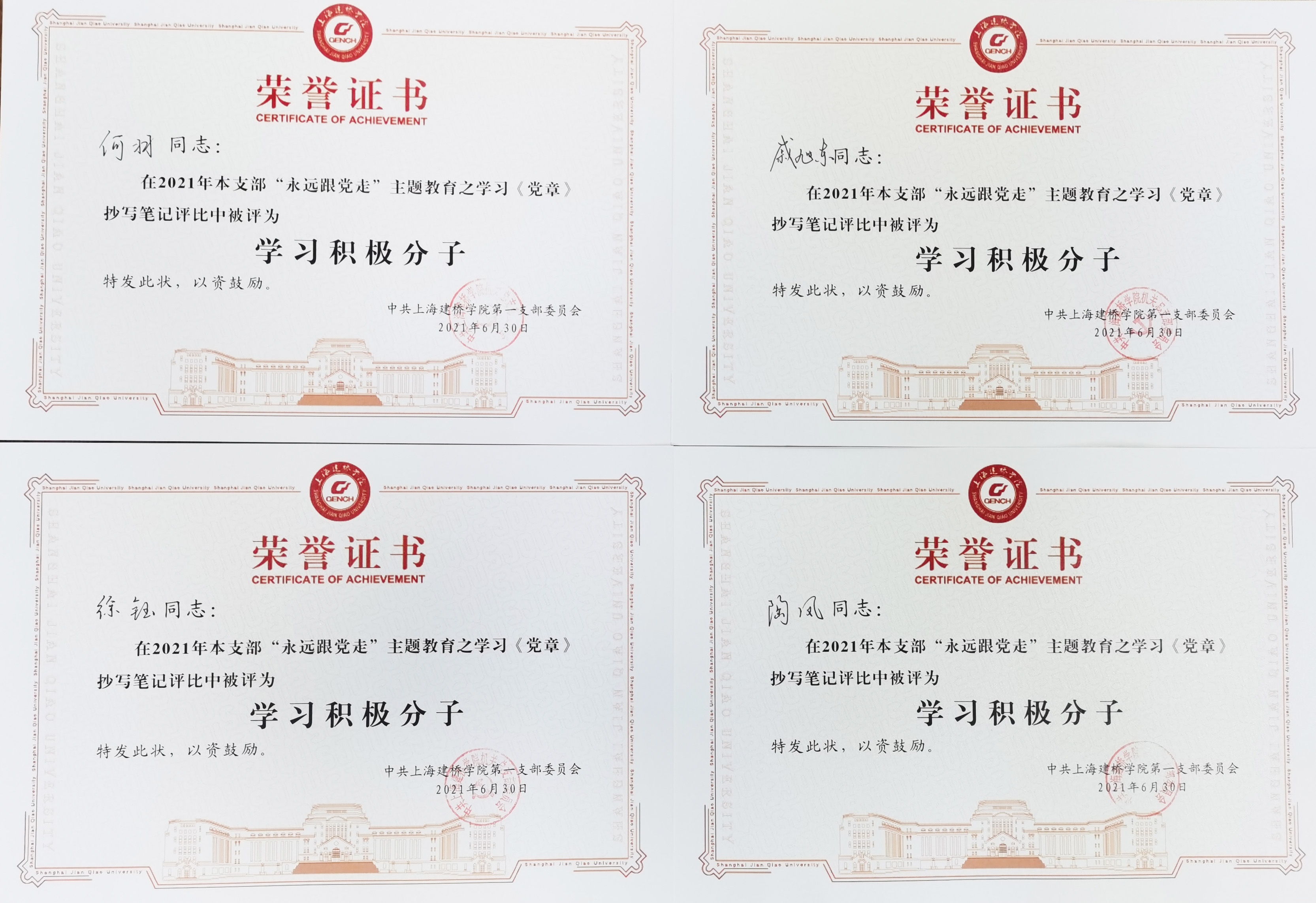 为全面贯彻落实习近平新时代中国特色社会主义思想和党的十九大以及十九届历次全会精神,隆重热烈庆祝中国共产党成立100周年,上海建桥学院机关第一党支部遵循“党的盛典,人民的节日”原则,围绕立德树人根本任务,积极开展“永远跟党走”主题教育,努力打造学习型团队,不断推进支部建设科学发展。