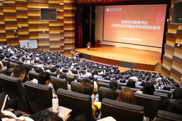 商学院2022届毕业生共有1777人,为帮助同学们早知晓、早启动、早规划、早行动,确保未来学年的毕业实习、毕业论文、学位授予、择业就业等顺利完成,商学院提前部署,于6月29日在大礼堂组织召开2022届毕业生毕业动员大会。大会分两场举行,商学院院长高健、党委书记刘爱香、副院长尹卫华、副书记俞海燕以及系主任、辅导员和全体毕业生参加。会议由刘爱香书记主持。