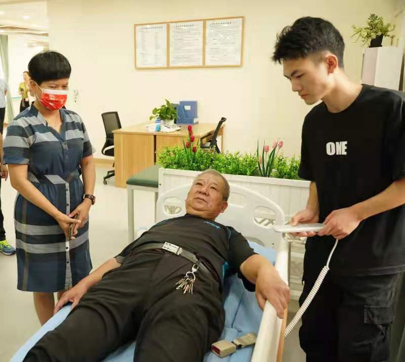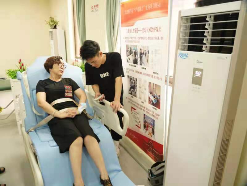 “自动化辅助护理床”根据长期卧床老年人日常生活护理需求而设计,具备自动拍背、翻身、脚部活动等特色功能,可有效降低坠积性肺炎、褥疮和足外翻等并发症的发病几率,提升长期卧床老年人的生活品质,同时降低护理人员的工作强度,具备较高的市场价值和社会价值。在体验期,这一护理床受到了老人的欢迎。