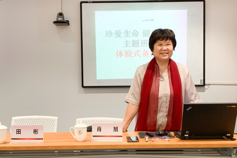 “珍爱生命 健康成长”培训由四川大学肖旭教授主讲。她向辅导员示范了如何开展生命教育的主题班会,还通过工作坊的方式进行积极心理学取向的生命教育。