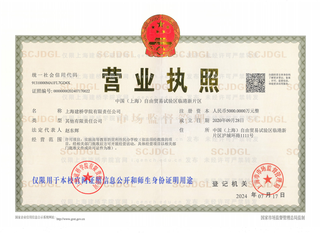 学校全称:上海建桥学院有限责任公司(简称:上海建桥学院)