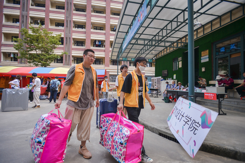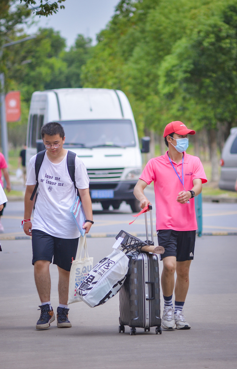 疫情防控要求下,很多家长无法为孩子搬运行李。为了方便新生办理搬到流程,学校提供行李寄存、行李托运服务,新生可无需携带行李,轻松办理报到手续,并可根据需要自主选择小推车租赁、电动三轮车托运,将行李送至宿舍。