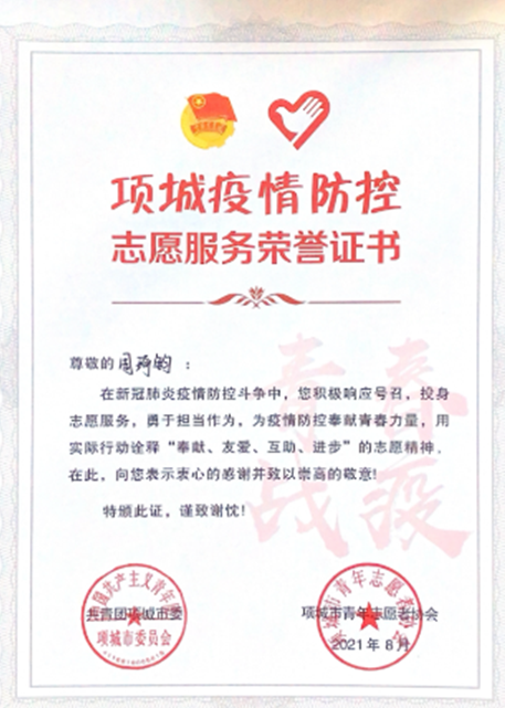 “哪有什么岁月静好,不过是有人在负重前行。”在疫情防控关键时刻,还有无数个像周琦钧同学一样的青年大学生,一路逆行,奔赴到防疫一线。正是各行各业、千千万万个坚守在抗疫一线的奋斗者,勇于担当、甘于奉献,聚涓滴之力,护山河无恙。(供稿:商学院)