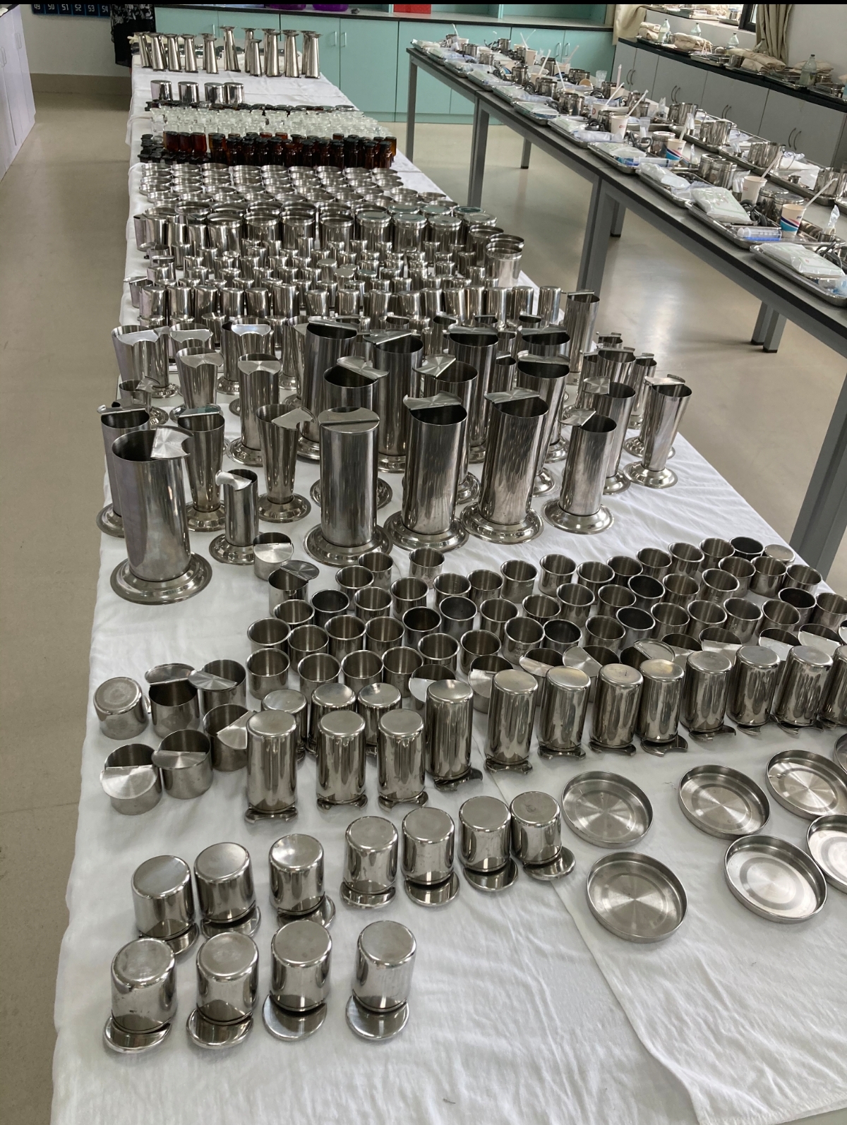 9月1日起陆续开展实训中心环境卫生清理、安全隐患排查及设备仪器养护等工作,对实训中心现有耗材、物资等进行整理盘点、补充申购、清洁消毒,尤其是对实验中可重复利用的器械,进行浸泡、擦洗、晾晒,再进行分类整理,摆放整齐,做到规范划一,并做好防潮、防湿、防腐等方面的养护;全面清查检修现有故障设备并及时报修;对入学新生进行工作服试穿统计等实践教学相关工作,以满足和保障实践教学需求。