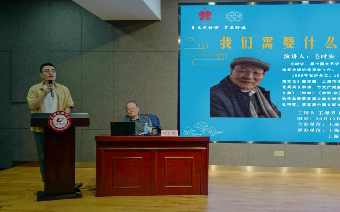 10月12日下午,上海建桥学院珠宝学院四楼报告厅座无虚席,二百多师生兴趣盎然地聆听着原中国文艺评论家协会副主席、上海美协理论委员会主任毛时安先生关于“我们需要什么样的美好艺术”的精彩演讲。这是一场关于美之价值、美之心灵、美之人性、美之社会生活的学术盛宴。