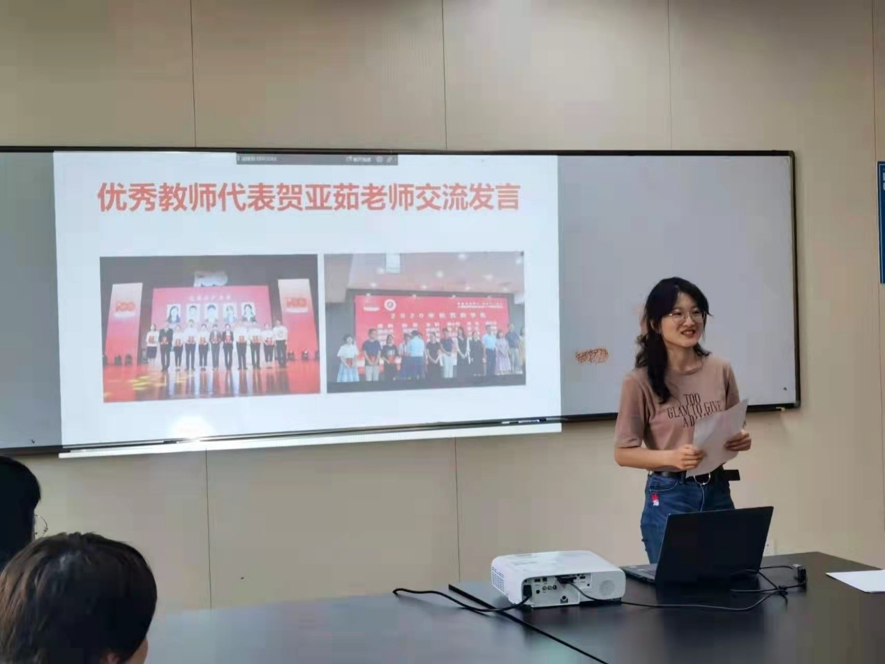 优秀教师代表贺亚茹在会上交流发言,表示作为一名青年教师,要认真对待每一门课程,课堂上以多种形式调动学生学习积极性,课后关心引导学生成长成才。对同事热忱相待,尽己所能,给予帮助。作为一名党员,更意味着责任重大,坚持教书和育人相统一,言传和身教相统一。