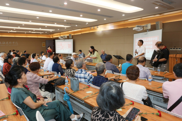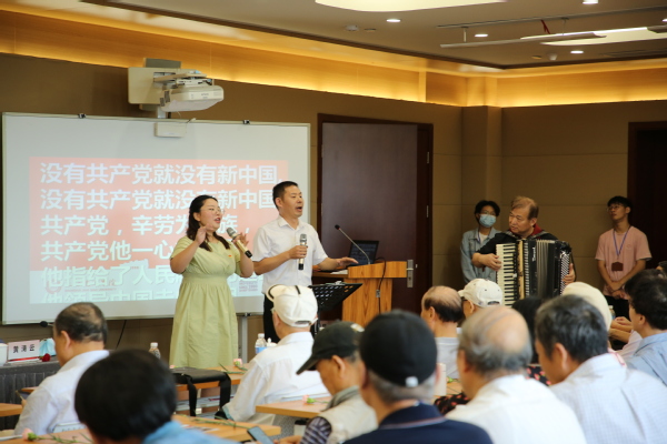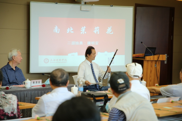 四个精彩的节目拉开了活动序幕。校合唱协会(校合唱团)谢丹萍和卞浩老师的歌唱、康明安老师的二胡和武杰峰老师的手风琴演奏优美动听,余音绕梁,整个会场沉醉其中。最后在四位老师的带领下,全场齐唱《没有共产党就没有新中国》,将气氛推上了高潮。