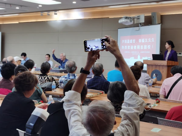 10月15日,校工会、校退管会组织筹备了“夕阳逢盛世,幸福久久久”重阳节老同志返校活动,邀请退休离校的老领导、老教师们返校欢聚叙旧,在符合疫情防控要求的前提下,八十余名老同志们应邀赴约。