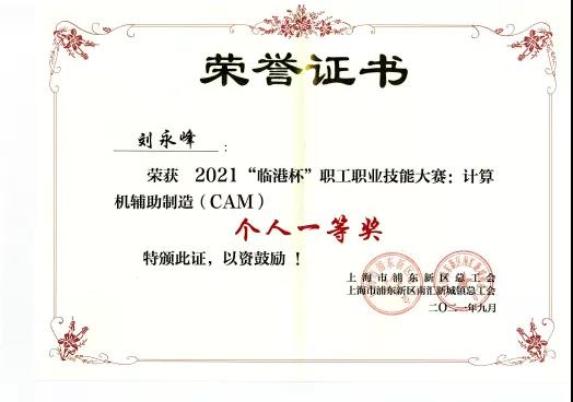近日,在2021“临港杯”职工职业技能大赛中,机电学院实训中心刘永峰老师在计算机辅助制造(CAM)项目中,获得个人一等奖的优异成绩。