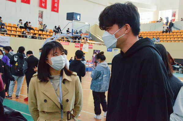 在学院补给站,志愿者们手拎补品在献血等候区为同学们送上温暖,询问着同学们的身体情况并耐心录入献血同学的信息,天气很冷,但大家的心暖暖的。