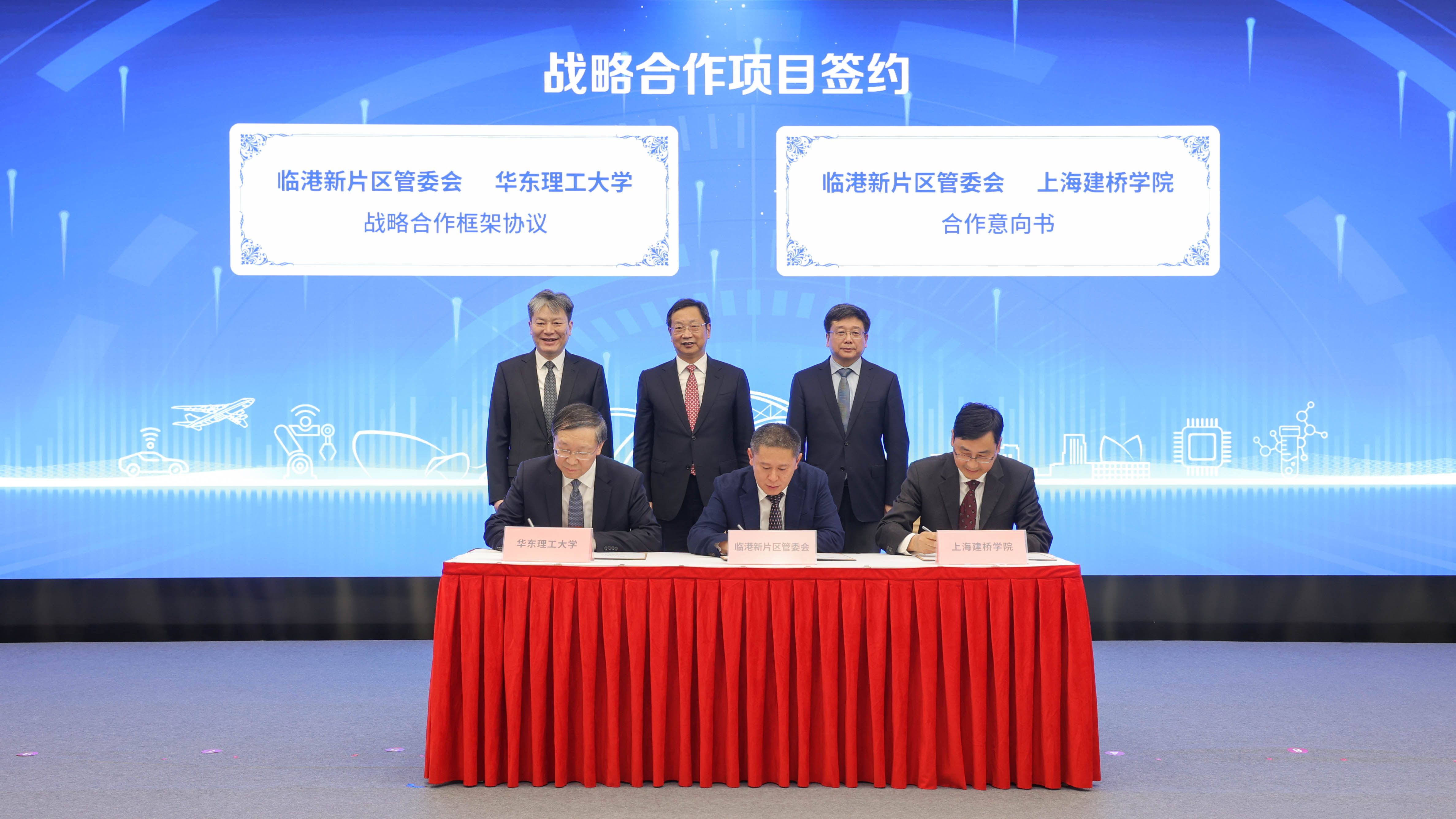 临港新片区管委会和华东理工大学、上海建桥学院签署战略合作,将在产教融合、成果转化、创新创业等方面进行深入合作。