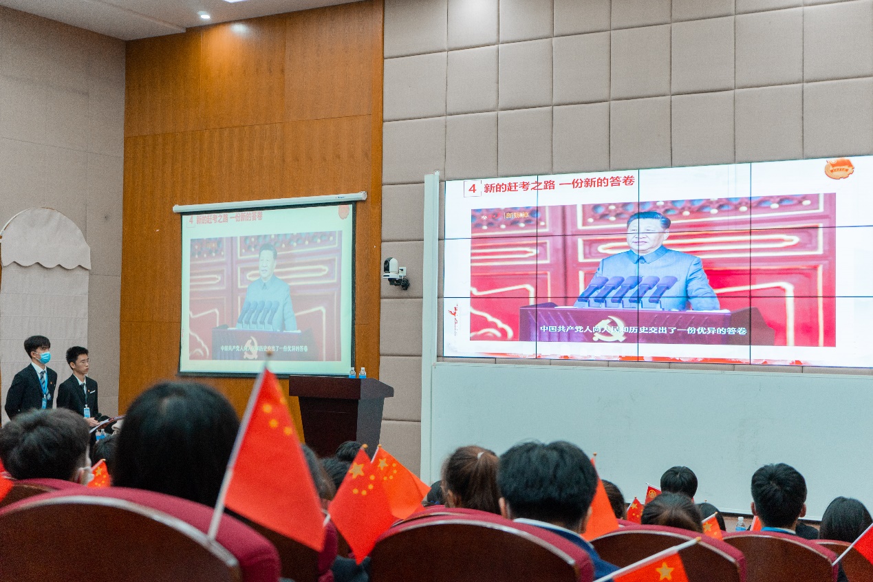 过去一百年,党向人民、向历史交出了一份优异的答卷,现在,党团结带领中国人民又踏上了实现第二个百年奋斗目标的新的赶考之路,时代是出卷人,我们是答卷人,人民是阅卷人,我们一定要继续考出一个好成绩,在新时代新征程上展现新气象新作为。会议最后,全体同学共同观看了微视频《答卷人》,深入了解中国共产党的百年奋斗征程。