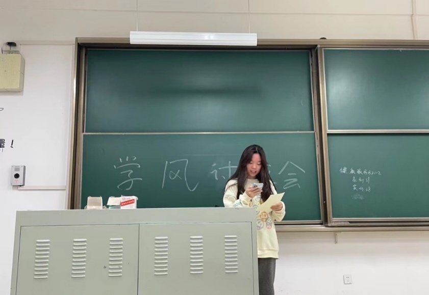 对于“如何开始抓学风“,同学们表示,第一,应当建立起学生的主体地位。在学风建设中,学生应该发挥自己的主观能动性,调动起对于学习的内在需求,做到端正学习态度,树立起学习目标。第二,学生干部要起到带头作用。班干部要定期宣传学风建设的重要性;团支书和入党积极分子组织开展好党建活动,提高同学们的思想觉悟并起到带头模范作用;寝室长应该督促寝室成员保持寝室卫生,建设好寝室文化共同创建三级建家。第三,每位同学都应该及时劝阻不文明行为,对于酗酒、抽烟、打架等各种违反校纪校规的行为及时制止和劝阻。