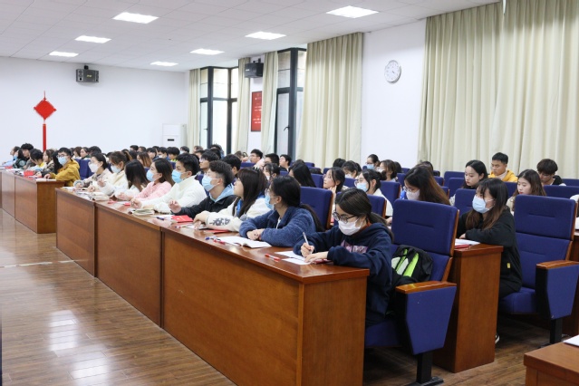周英芬书记从中国共产党成立100周年和党的十九届六中全会两件国家大事出发,为学员们介绍了中国共产党的初心和使命,通过图文结合的生动形式,讲述了党的十九届六中全会召开的历史背景、主要议程,向全体中党学员详细地讲解了党在百年奋斗历程中积累的“十个坚持”的宝贵历史经验。还分享了去年新冠疫情初期,学校及学院在党的领导下开展防疫工作的亲身经历,希望同学们能够深入学习、体会并思考“如何做”、“怎样做”的问题,努力做一名有责任、有担当的中国青年。