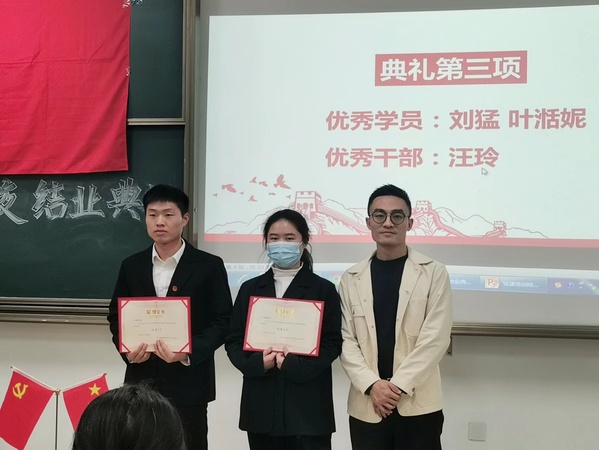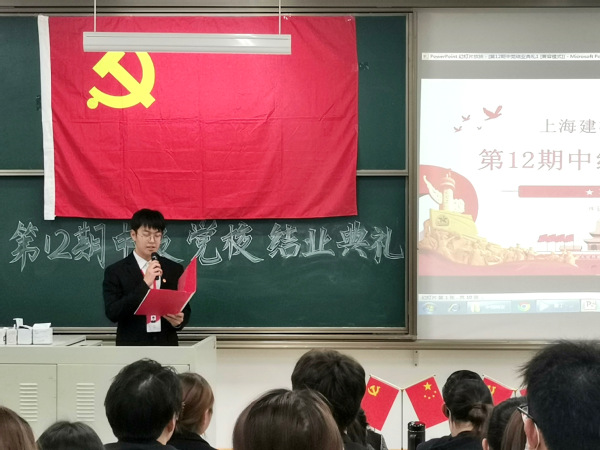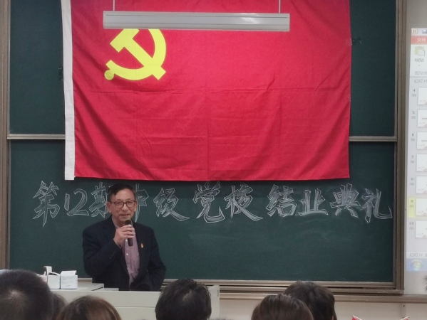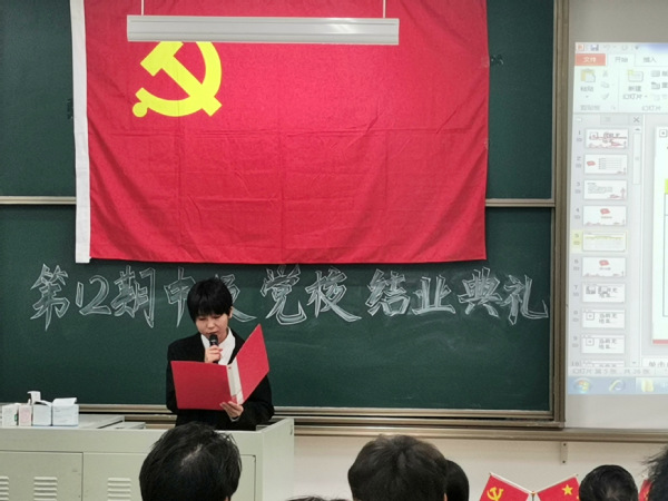 典礼伊始,全体与会人员起立,奏唱国歌。随后第12期中级党校班长、学生党支部学生党员封佳就本次党校的学员情况、党课内容以及学员成绩等做汇报总结说明。本期优秀学员代表刘猛及优秀干部汪玲做交流发言,并由刘衔宇院长和张维生书记为优秀学员和优秀班干们颁发荣誉证书。