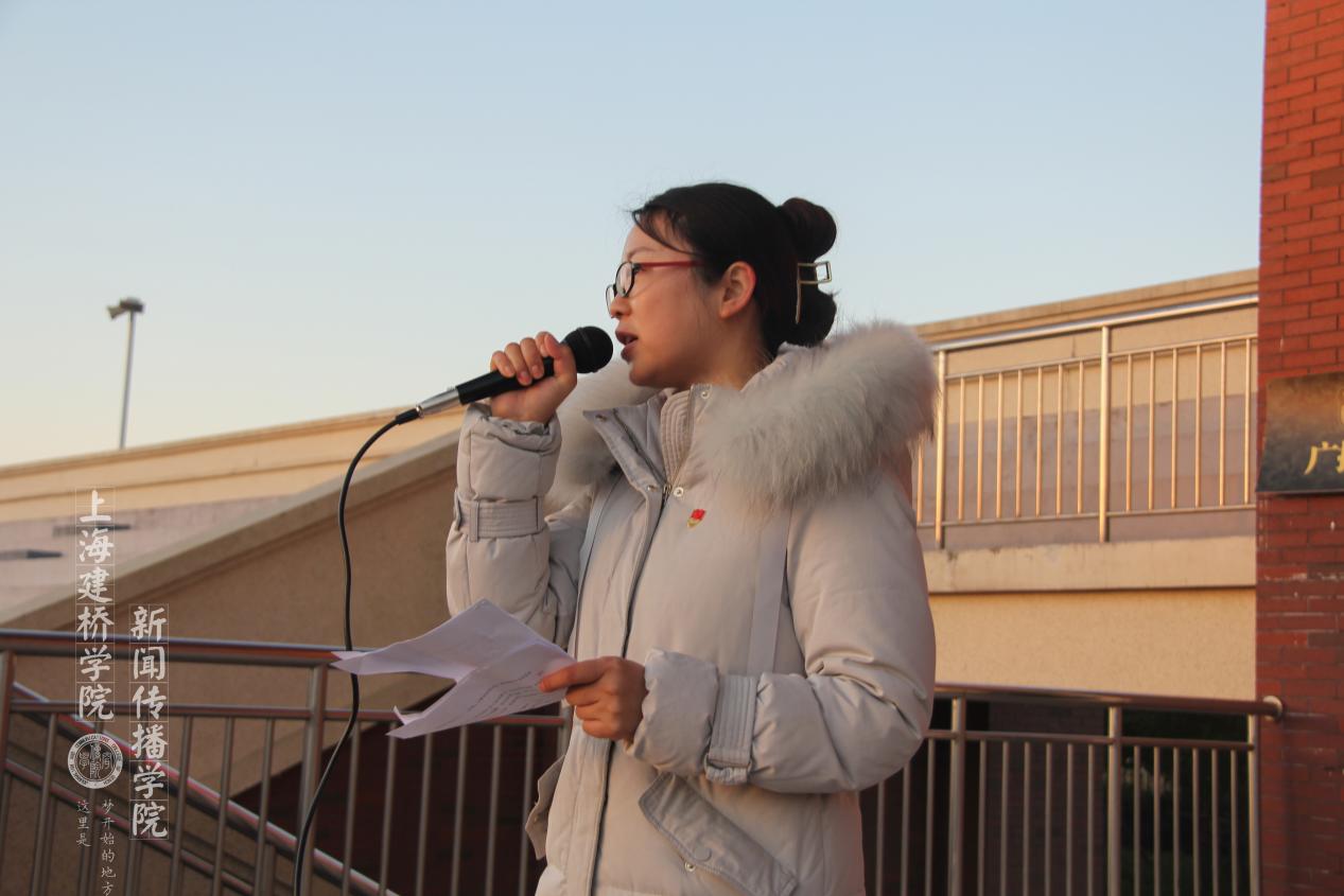 最后,党委副书记吴成皓致辞。首先她对同学们不畏严寒,按时到场的表现提出表扬。其次,她再次强调本次升旗活动主题“铭记党史,立正学风”,表示:“在建党一百周年的伟大时刻,同学们作为新时代的青年,应该着重抓住学风建设,把学习作为首要任务;作为党和国家的未来和希望,要把初心二字刻在心里。要努力学习党史,不断增强做中国人的志气、骨气、底气,树立为祖国赤诚奋斗的决心。”她向老师们指出,只有立正教风,才能立正学风。要牢记教育初心,甘于奉献,自觉学习现代教育理念,更新观念,带动学生习惯养成,努力实现教育育才的目标,促进优良的学风建设。她告诉同学们立正学风应该是求知若渴的期待,闻鸡起舞的奋斗,打破砂锅问到底的探求,格物致知的思考和与时俱进的创新,要从党史中汲取智慧和力量,以史鉴今,立正学风。