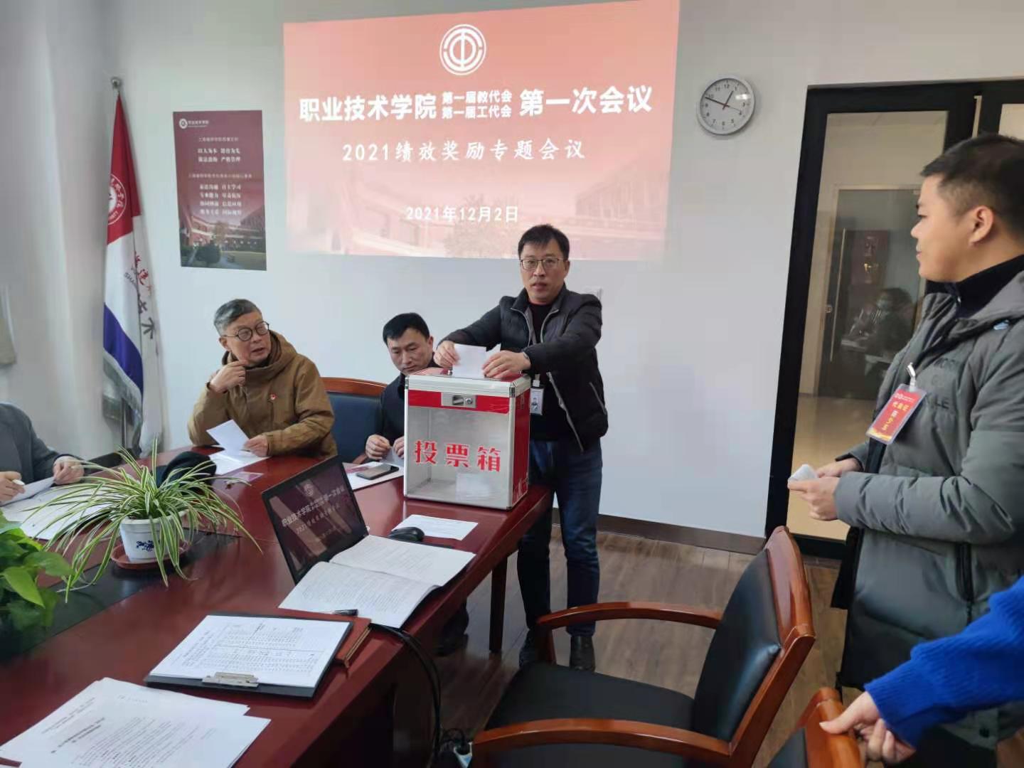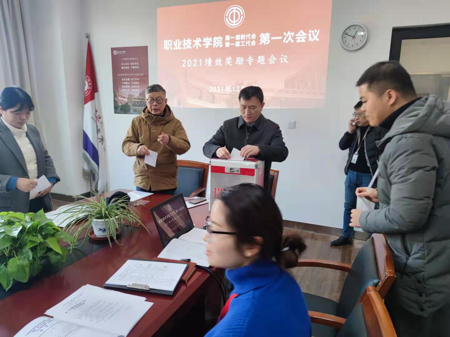 会议以无记名投票的形式高票通过了《职业技术学院2021年绩效奖金(新增)实施方案》。