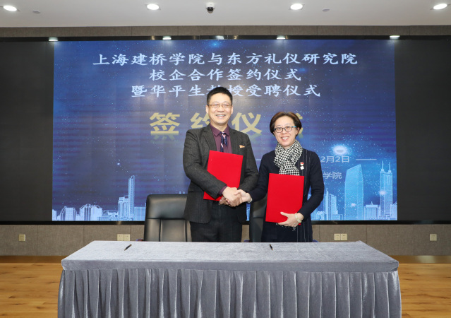 我校与中国东方礼仪研究院签约合作,旨在发挥各自优势,产学研相结合,搭建传播中华传统礼仪文化、提升师生素养的服务育人平台,以应用型高校美育课程建设为抓手,探索推进新型校企合作育人模式建设。本次活动中,教育学院林恬副院长介绍了合作共建的重点项目。一是校本礼仪系列课程开发,双方共同开发礼仪类高校公选课,提升在校生综合素养;二是推广应用,双方合作组建团队,对外承接产学研横向课题,并为本地企事业单位提供礼仪领域相关服务。目前,我校教育学院与研究院已合作开发了《旗袍礼仪》《形体训练》《社交礼仪》线下公选课。之后,双方将合作共建其他礼仪类课程,组织课程展演及临港高校大学生礼仪比赛等活动,拓展建设多样化的高校美育载体。