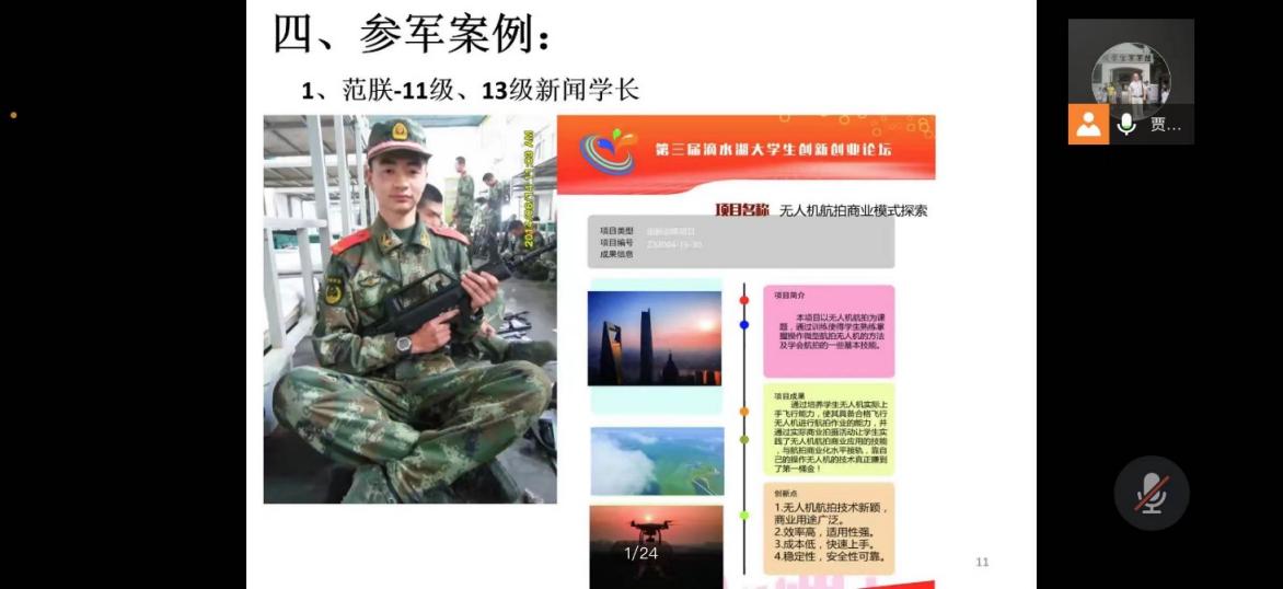 贾存忠就参军报名的年龄条件、身体条件、政审条件等事项进行了详细的解答;介绍了参军的多种优惠政策,解释了同学们关心的切身利益等问题;介绍了往年学院成功参军入伍学长的光荣事迹,呼吁同学们向优秀的学长学姐们看齐,踊跃报名参军。