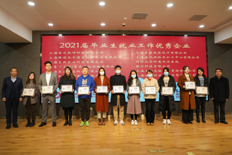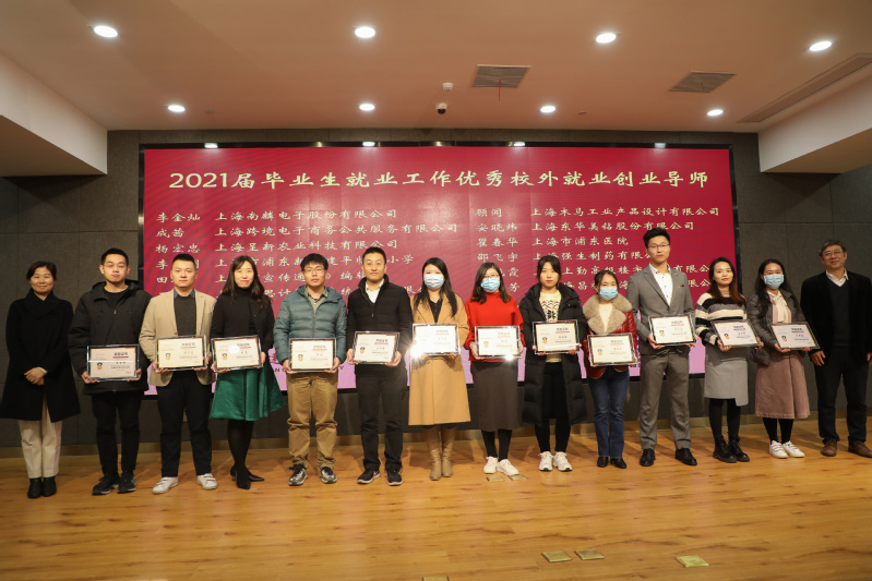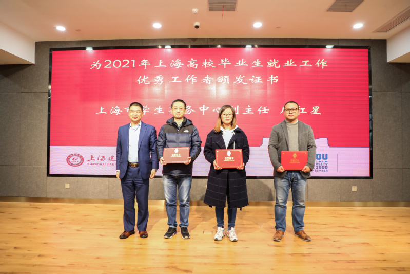 随后,副校长陈伟宣读《上海市教育委员会关于表扬2021年上海高校毕业生就业工作优秀工作者的通报》和《关于表彰2021届毕业生就业工作先进个人、优秀企业和优秀校外就业创业导师的决定》。出席的校领导为受表彰个人颁发荣誉证书。