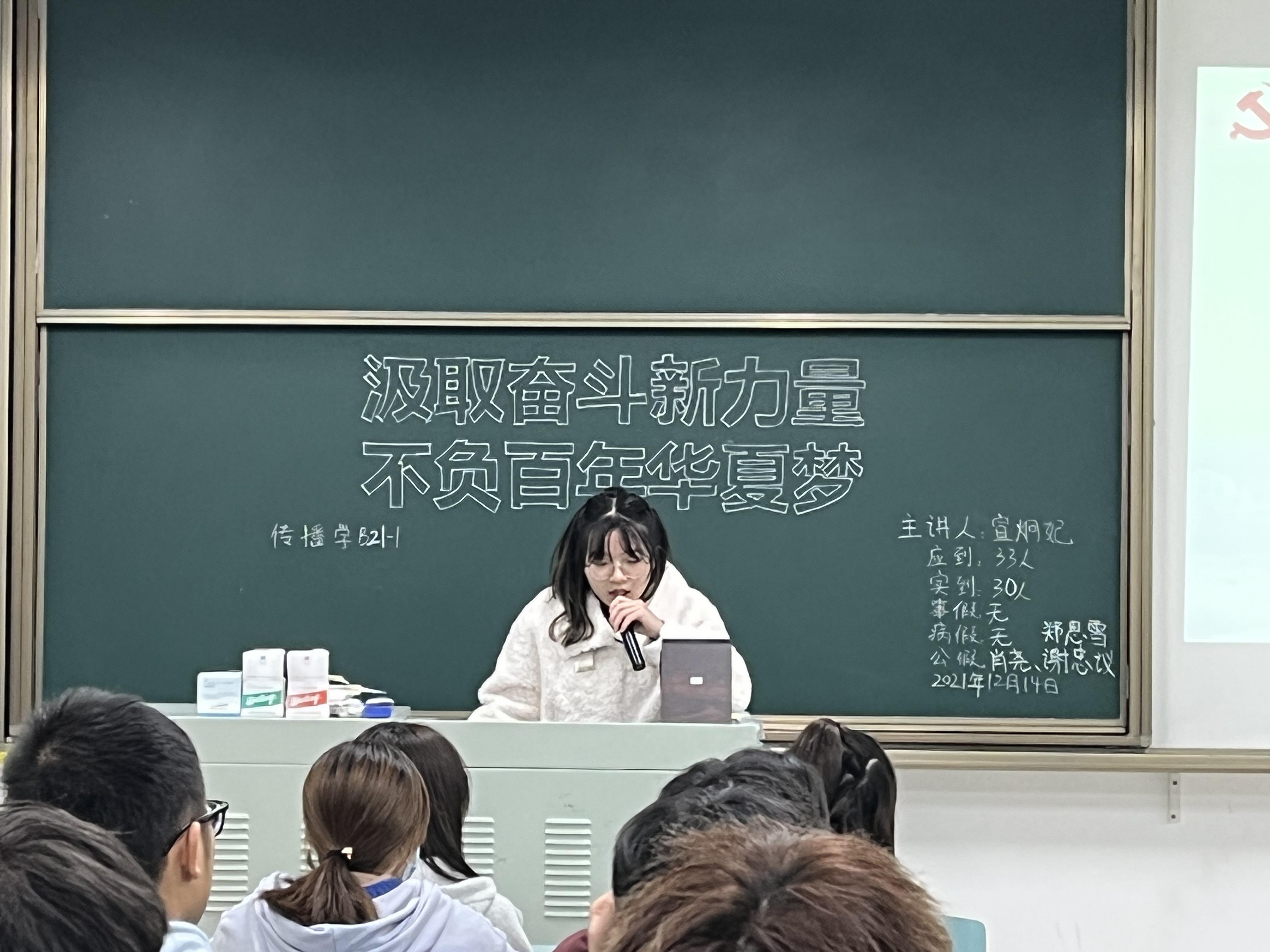 为贯彻学习党的十九届六中全体精神,从百年党史中汲取精神力量,使在对历史的深入思考中做好现实工作、更好走向未来。12月12日至15日,新闻传播学院21级各团支部组织开展“汲取奋斗新力量,不负百年华夏梦”主题团组织生活会。