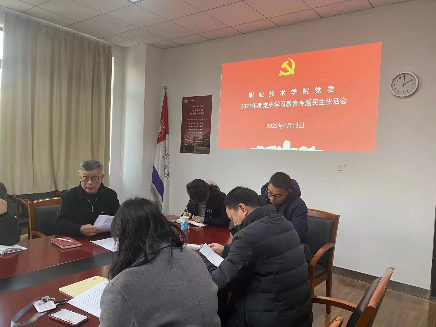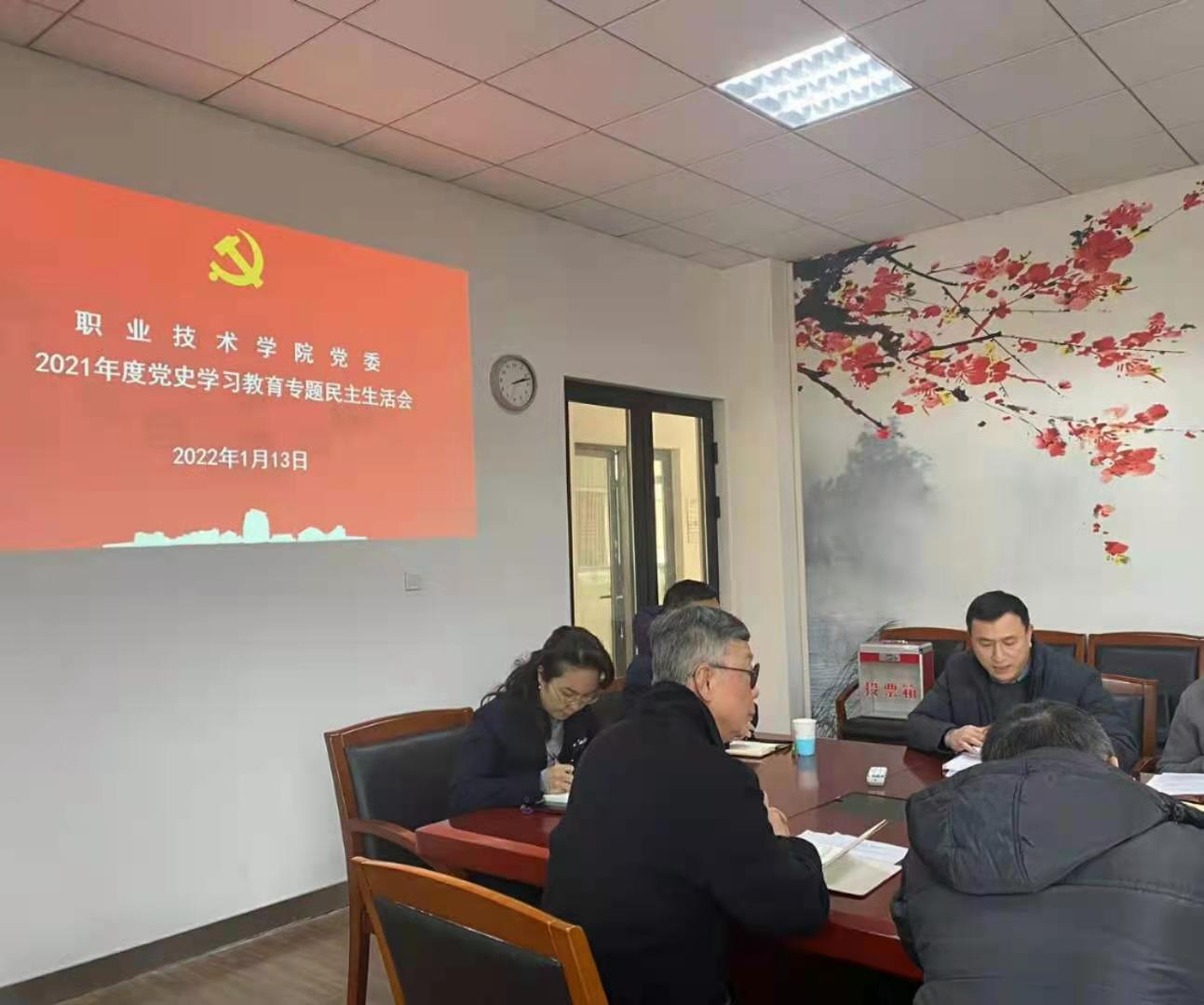 1月13日下午,职业技术学院党委召开2021年度党史学习教育专题民主生活会,全体党委委员、各支部书记以及学院教代会代表共15人参加会议,陈伟副校长,校院联络人、学生处处长张巍与会指导。