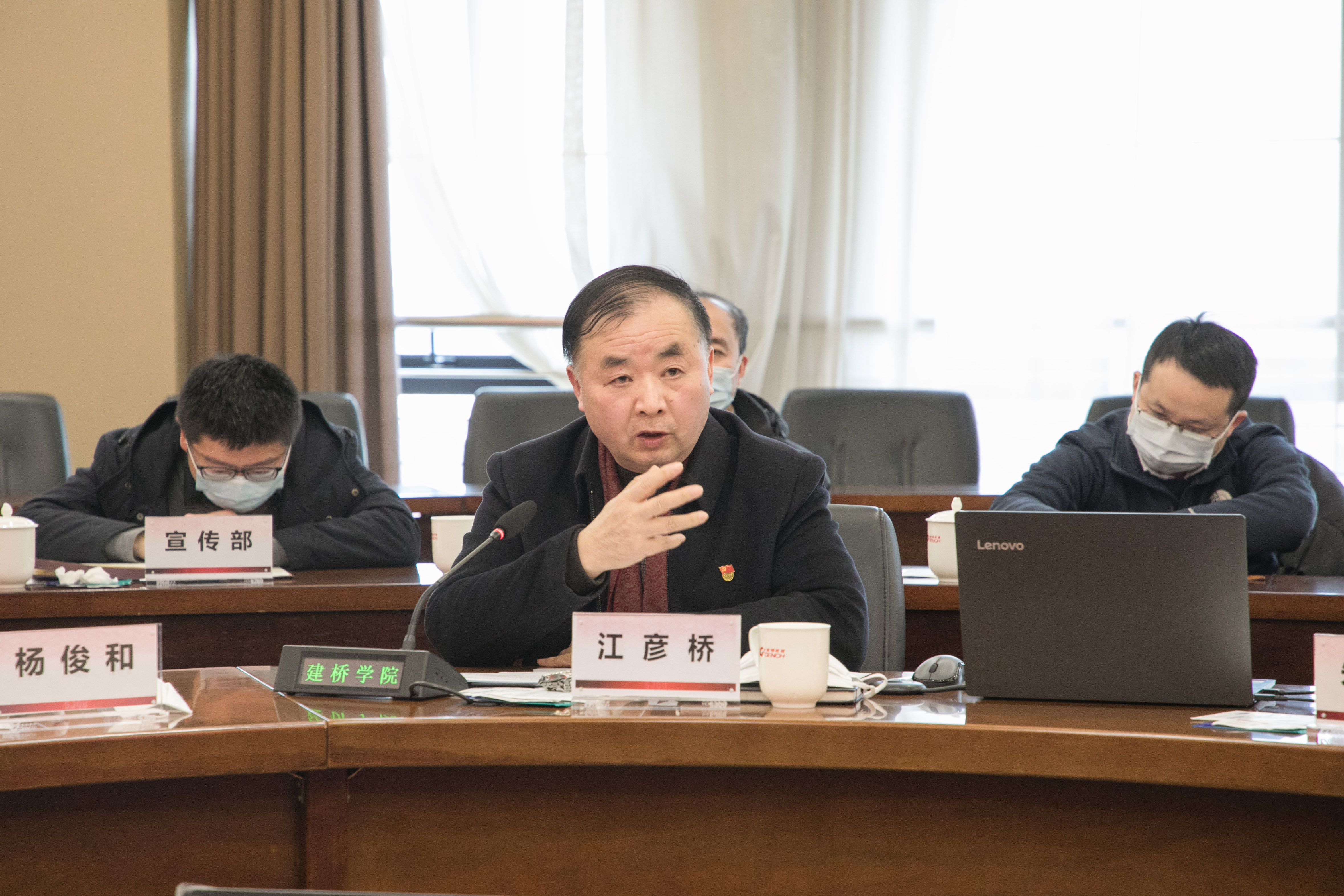 江彦桥就学校党建思政工作作了汇报。他从强化党组织功能、加强学校安全稳定工作、提升思想政治教育实效、加强师德师风建设等方面介绍了学校开展党建思政工作的成果及规划。学校获批教育部高校思想政治工作创新发展中心以及全国党建工作示范高校(公示中)后,学校党委将以查促建,提前谋划,明确建设发展方向,多措并举,开展落实,加强自身能力建设。