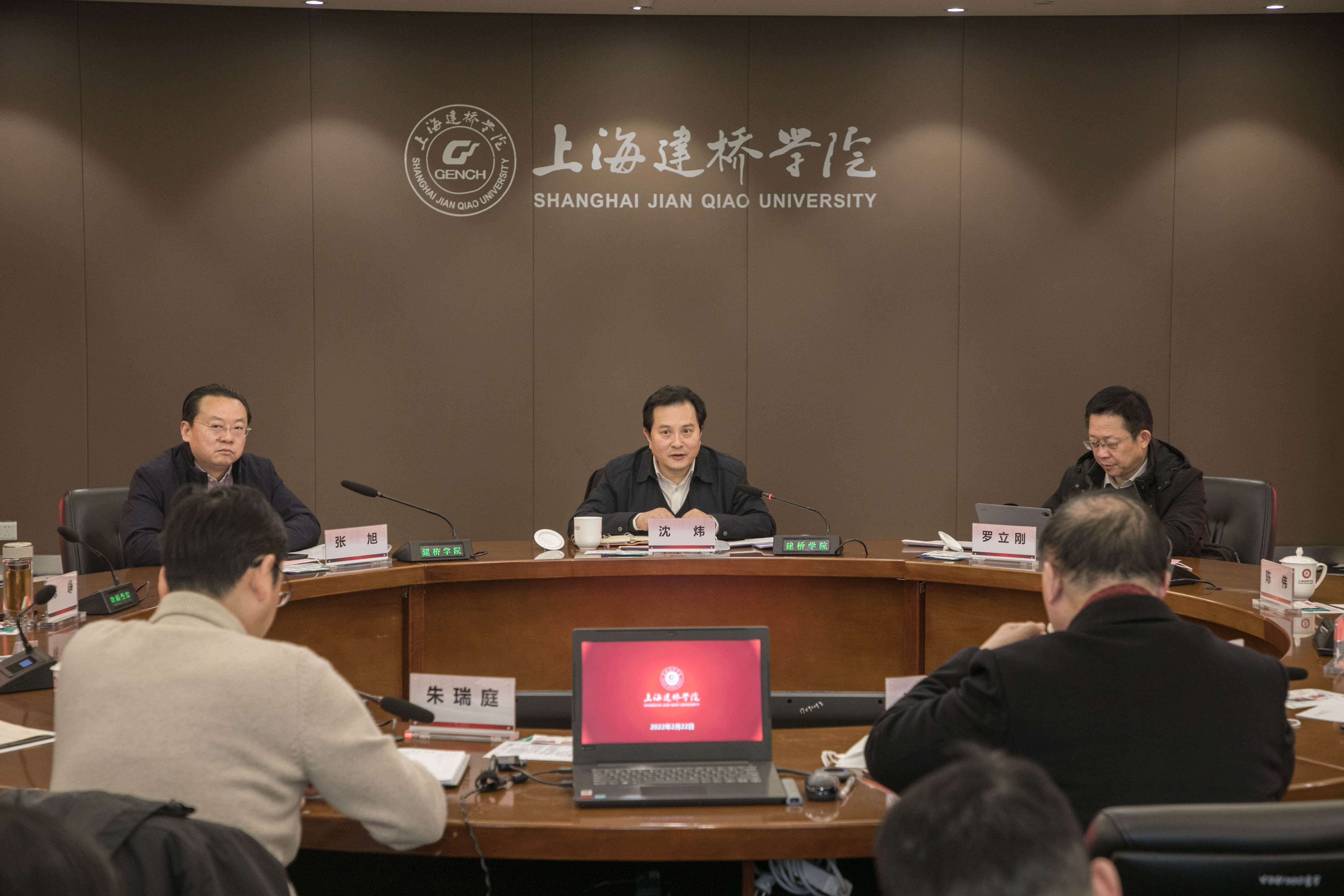 沈炜在听取党政领导班子的汇报后,首先代表市教卫工作党委对学校获批教育部高校思想政治工作创新发展中心以及全国党建工作示范高校表示热烈的祝贺。对我校坚持应用技术大学办学定位,紧密结合上海和浦东地区经济社会发展,立足临港新片区推进产教城融合发展,坚持稳字当头,稳中求进工作总基调,以及近年来学校各方面所取得的成绩给予了高度的评价。