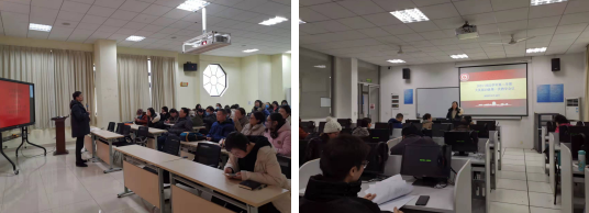 最后,20级和21级两个教研团队分别在9129和9329会议室召开年级教研活动。孔辉和陈迎春老师分别就20级和21级教学安排做了详细部署和说明,主要从教学进度、考核方案、课程设计、分层教学安排、教学注意事项及要求等方面展开介绍。王颖老师就线上学习部分使用的随行课堂APP和词达人操作进行了详细展示。