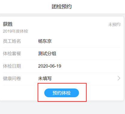 2.1单位体检的人员点击团队体检,然后点击预约体检。