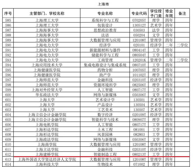 近日,教育部公布了2021年度普通高等学校本科专业备案和审批结果,上海建桥学院新增智能制造工程专业,学校本科专业增至37个。新增专业也将列入学校2022年本科招生计划。