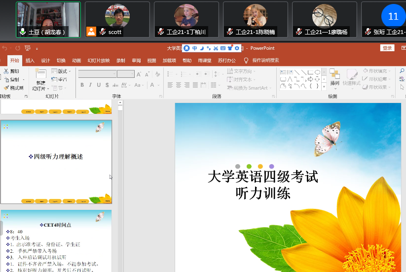 本次讲座由上海海事大学外国语学院大学英语部胡龙春老师主讲。2020级、2021级准备参加四级考试的学生以及2019级部分有兴趣的同学,共计约100名同学聆听了讲座。